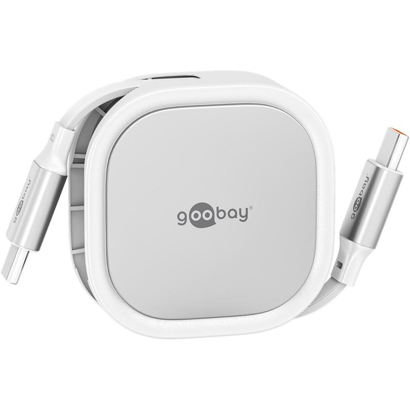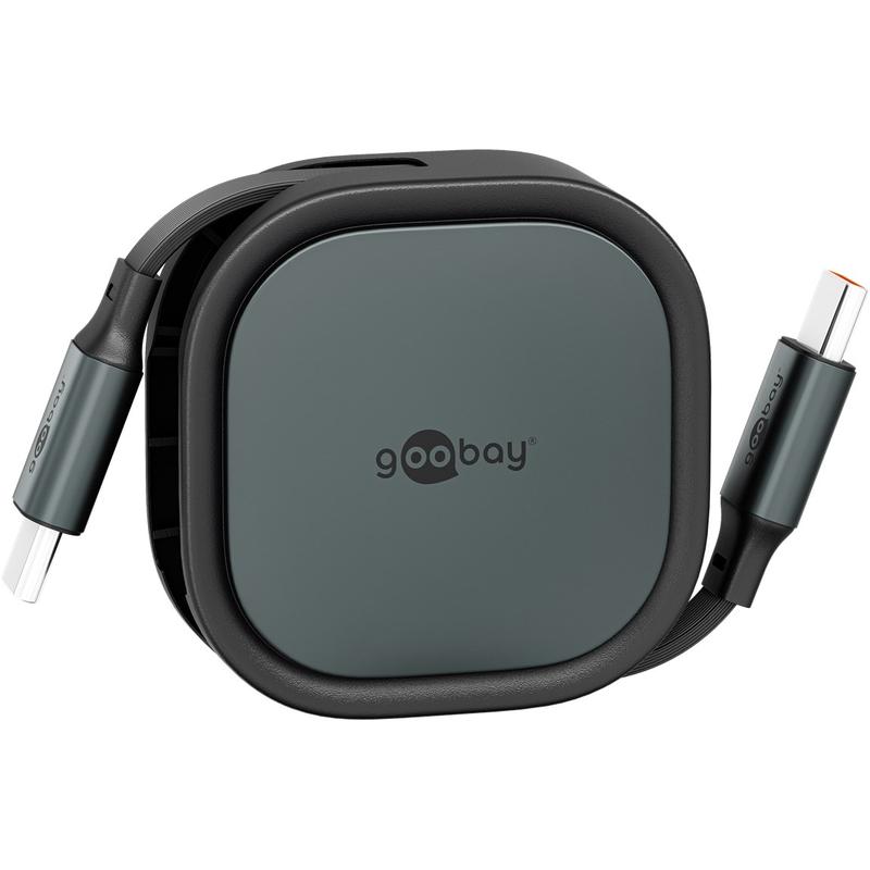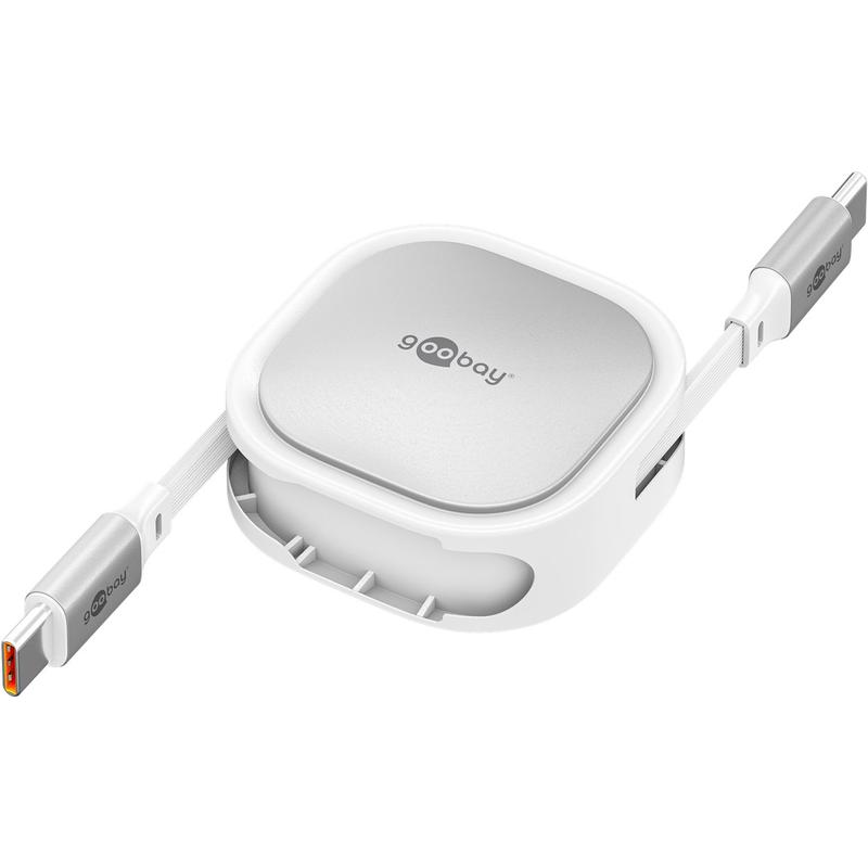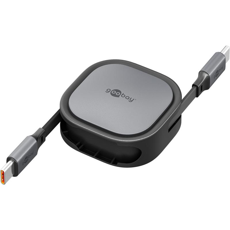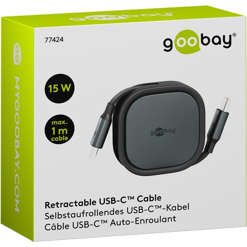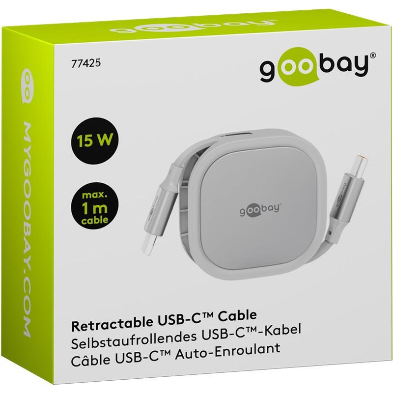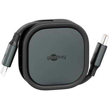 Cabo USB-C Retráctil Goobay - Cabo de carregamento plano de 1m com potência de 15W e mecanismo de retração automática