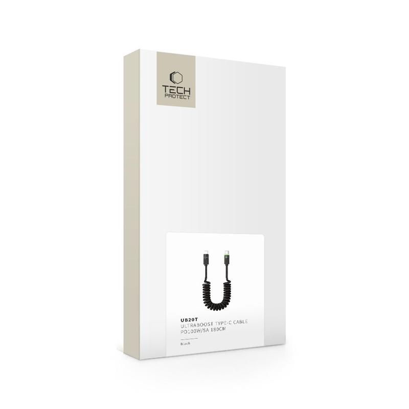 Cabo USB-C Retráctil Tech-Protect UB20T UltraBoost para Carregamento Rápido - Fornecimento de Energia 100W/5A, 180cm