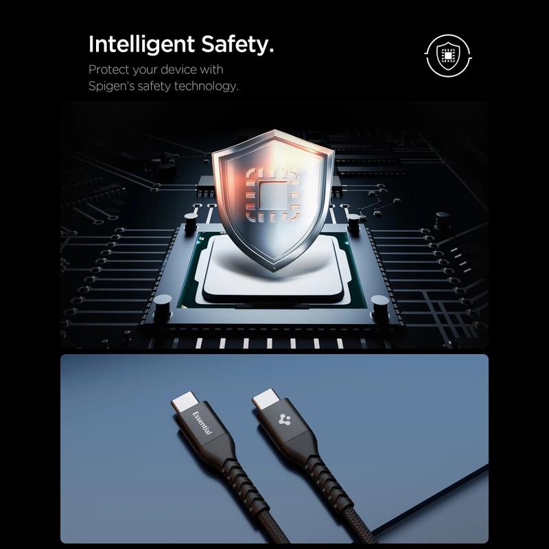 Concebido para utilização a longo prazo, o cabo utiliza o design Dura Bend da Spigen para melhorar a flexibilidade e a resistência a dobras repetidas. As extremidades reforçadas ajudam a proteger as áreas mais vulneráveis do desgaste diário, enquanto o chip E-Marker certificado ajuda a gerir a energia de forma segura, reconhecendo o dispositivo conectado e ajustando os parâmetros de carregamento em conformidade. Isto ajuda a suportar um carregamento estável e adiciona proteção contra sobreaquecimento, sobrecarga e curtos-circuitos.
