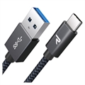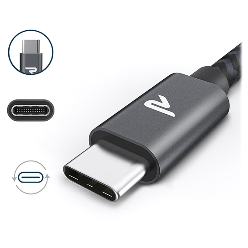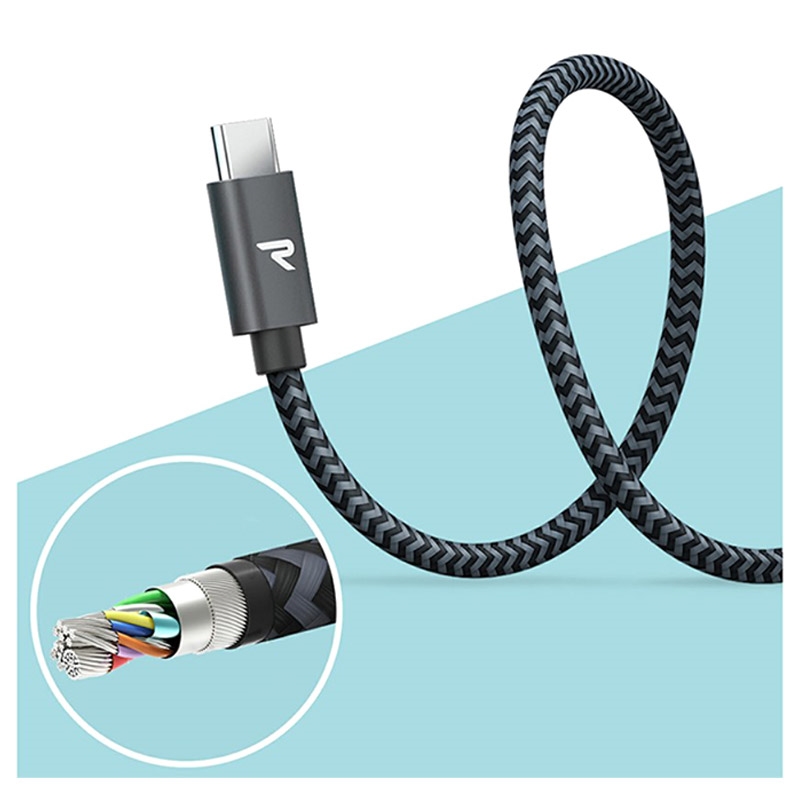 Cabo USB-C Trançado de Nylon Rampow T04 - Quick Charge 3.0, 5Gbps, 3A - 2m