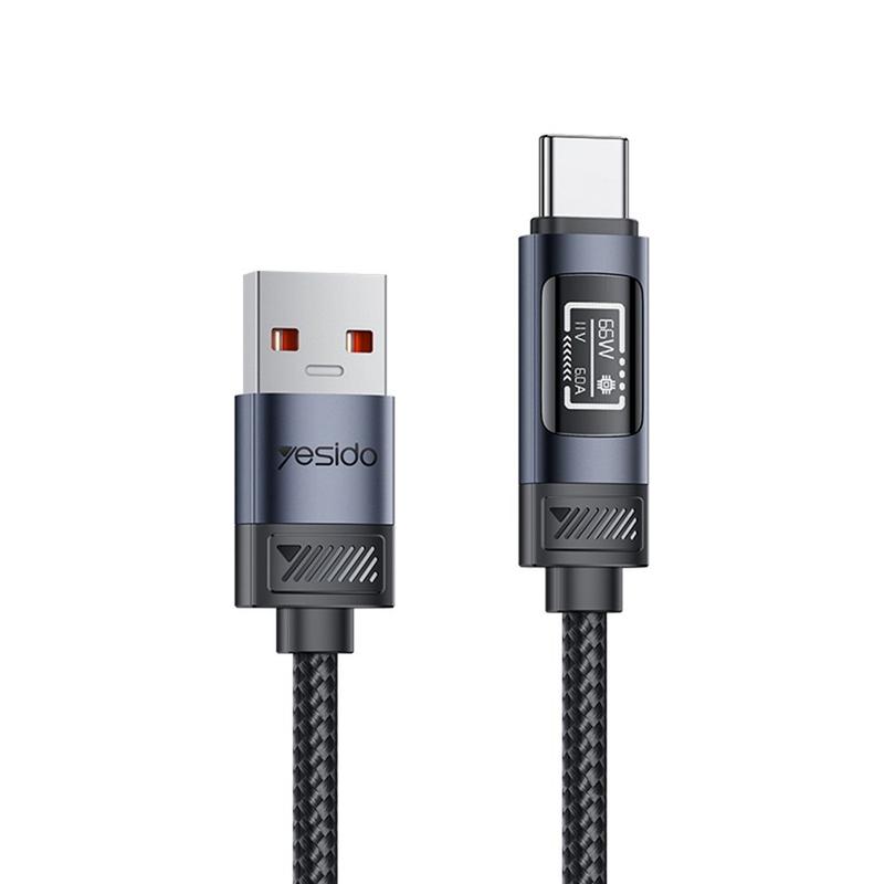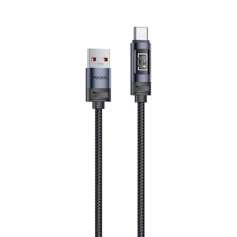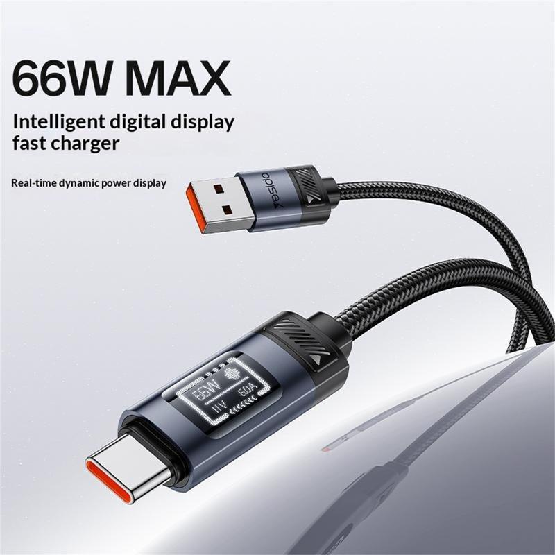 Cabo de carregamento rápido Yesido CA138C de 66W - Cabo de dados trançado em nylon USB-A para USB-C com ecrã digital OLED - 1.2m