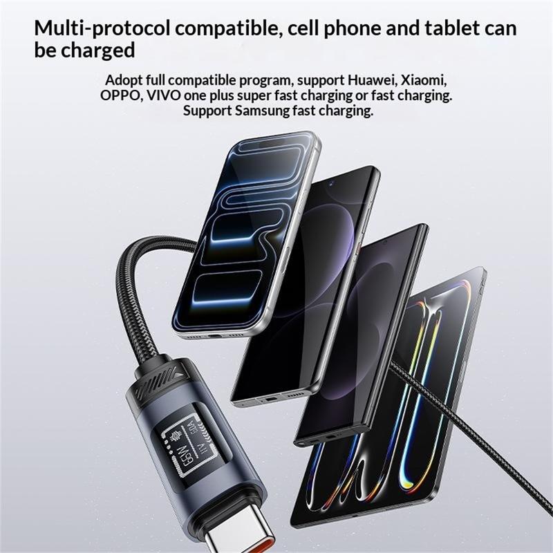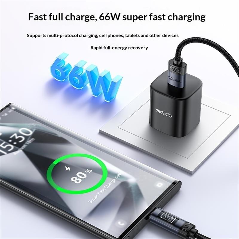 O YESIDO CA138C destaca-se graças ao seu ecrã OLED integrado que mostra informações de carregamento em tempo real. Combinado com uma forte capacidade de carregamento rápido, uma construção trançada durável e ampla compatibilidade com dispositivos, oferece desempenho e fiabilidade para as necessidades de carregamento do dia a dia.