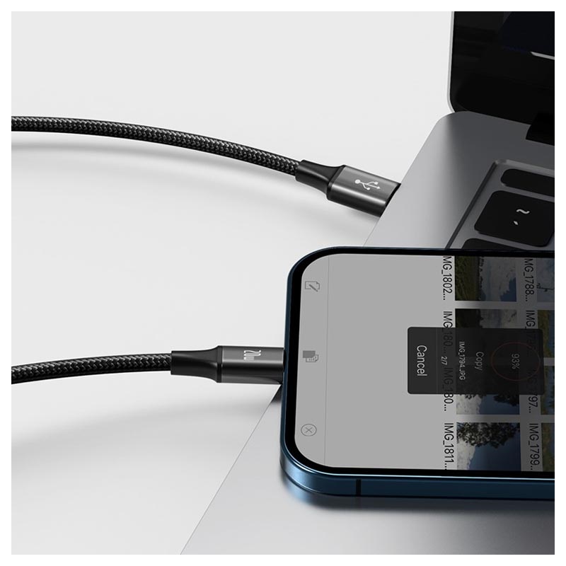 O cabo USB-C, 3 em 1, Baseus Rapid junta três fichas diferentes para carregamento rápido de múltiplos dispositivos, usando apenas uma fonte de alimentação. Este cabo de 1,5m, com conectores USB-C, MicroUSB e Lightning, suporta carregamento rápido a 20W e uma taxa de transmissão de 480Mbps. O cabo é feito em nylon trançado de qualidade e os conectores em liga de alumínio de elevada pureza, com o fito de resistir à torção e à dobragem.
