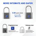 Mantenha os seus objetos pessoais mais seguros com este cadeado inteligente com leitor de impressões digitais, um cadeado compacto sem chave concebido para facilitar o dia-a-dia. Em vez de utilizar chaves ou senhas, abre-se com a sua impressão digital, tornando-o uma escolha prática para armários, mochilas, malas, cacifos de ginásio e caixas de arrumação.