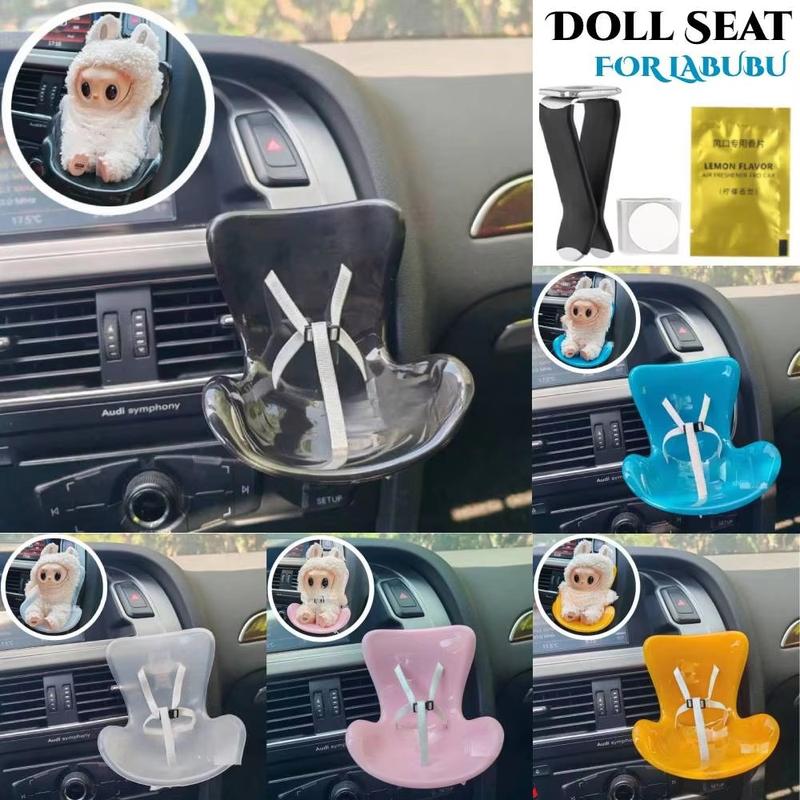 Labubu Mini Cadeira de Segurança para Automóvel - Suporte de ventilação para figuras de peluche de 17cm, cinto de segurança integrado, decoração interior