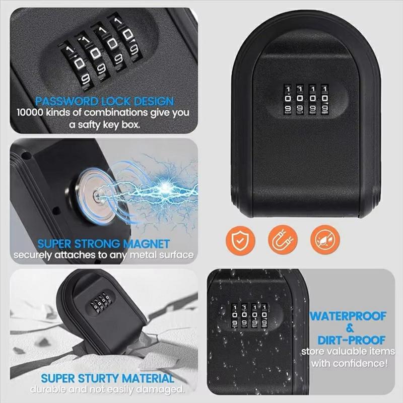- Acesso seguro: A fechadura de combinação de 4 dígitos mantém as chaves seguras e acessíveis apenas a utilizadores autorizados.