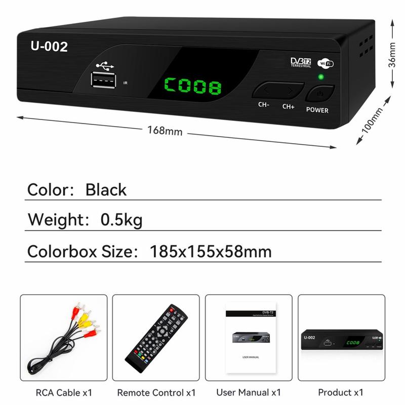 O H.264 DVB-T2 U-002 WiFi TV Box é perfeito para quem procura atualizar o seu sistema de entretenimento doméstico de forma acessível. É ideal para utilizadores que pretendem desfrutar de TV Full HD, transmitir conteúdos online ou utilizar um único dispositivo para várias funções multimédia. Com a sua fácil configuração e conetividade sem fios, esta caixa de TV é acessível a todos, proporcionando uma experiência de visualização perfeita e agradável.