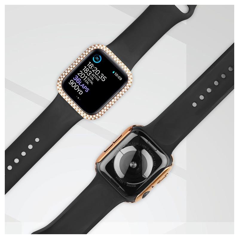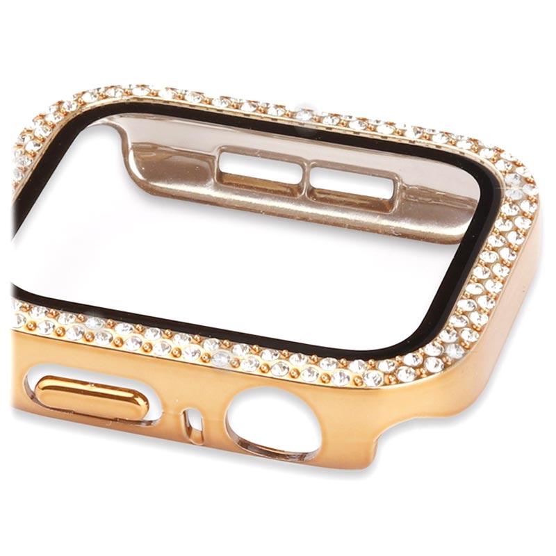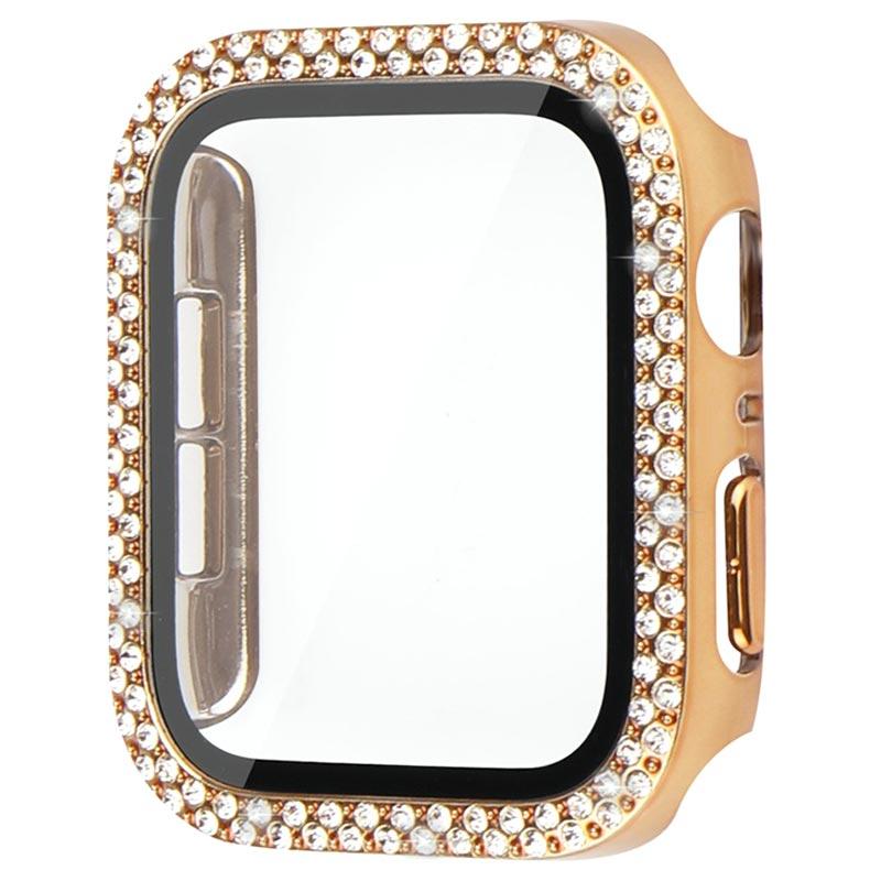 Caixa Decorativa com Strass de Vidro Temperado para Apple Watch SE (2022), Apple Watch SE, Apple Watch Series 6, Apple Watch Series 5, Apple Watch Series 4