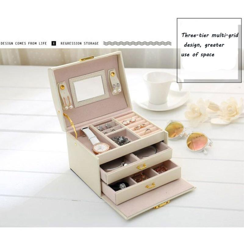 Porta-joias multifuncional com gavetas de arrumação, classifica colares, pulseiras, relógios, brincos, brincos de orelha, ganchos de cabelo, broches e outras jóias em perfeita ordem