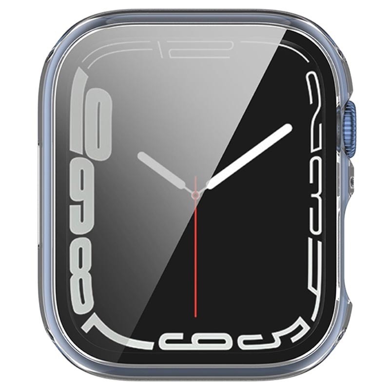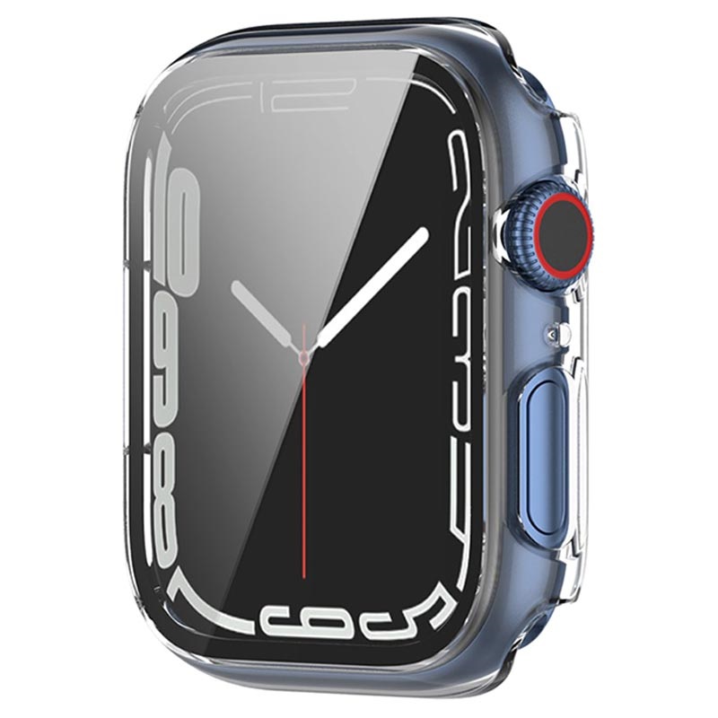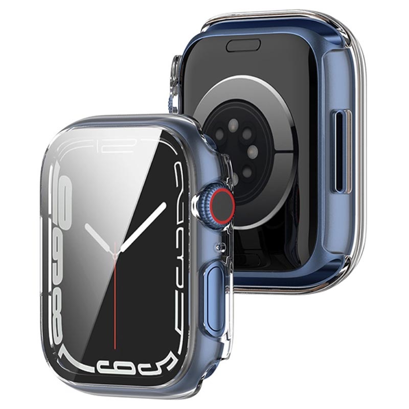 Escude o seu relógio Apple Watch Series 9/8/7 usando esta caixa 2 em 1 à prova de quedas com um protetor de ecrã de vidro temperado.