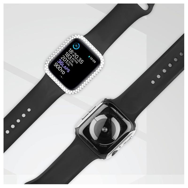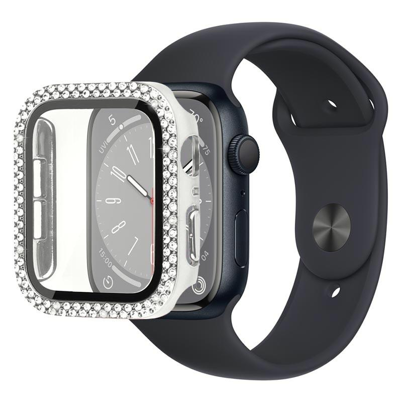 Caixa de Vidro Temperado Decorativa com Strass para Apple Watch Series 9, Apple Watch Series 8, Apple Watch Series 7