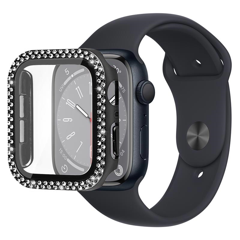 Caixa de Vidro Temperado Decorativa com Strass para Apple Watch Series 9, Apple Watch Series 8, Apple Watch Series 7