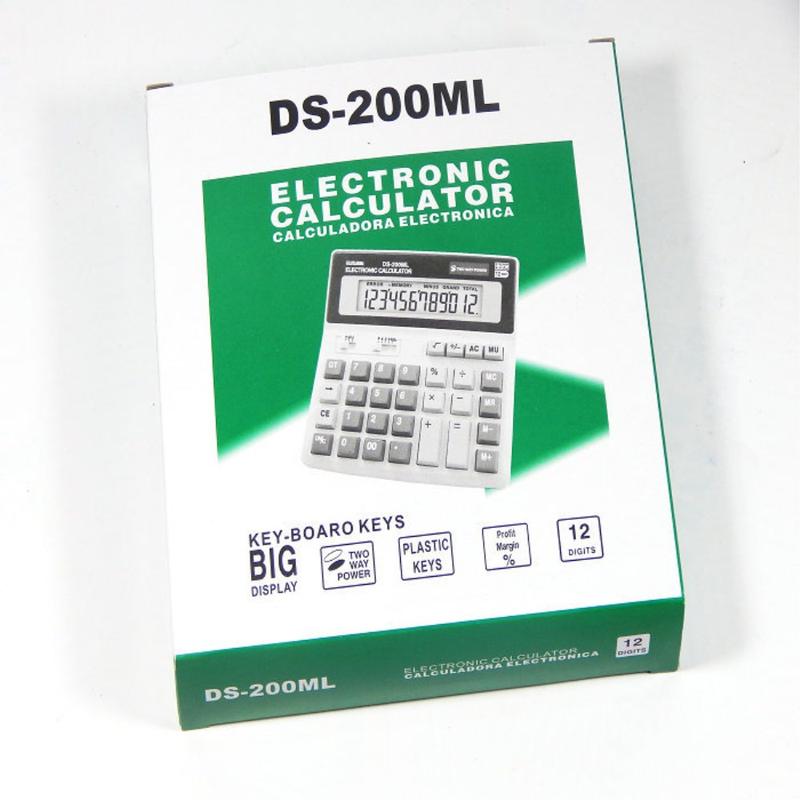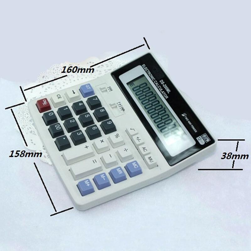 Calculadora de secretária DS-200ML - Ecrã LCD de 12 dígitos, alimentação dupla solar + bateria, utilização no escritório e na escola