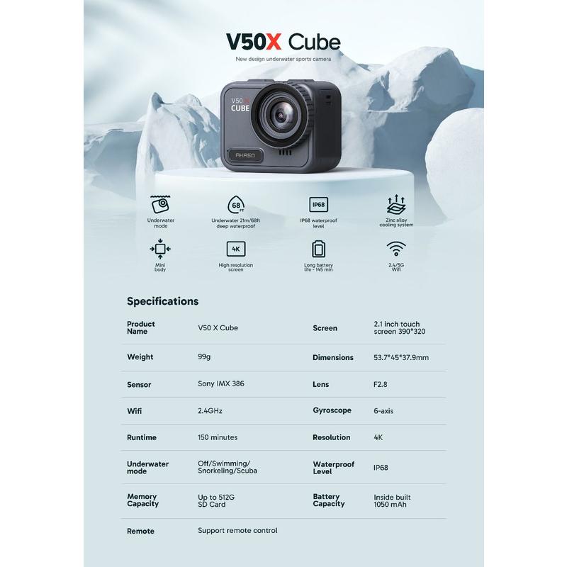 Melhore a sua narrativa com a câmara de ação AKASO V50 X Cube e garanta que todas as aventuras são captadas com detalhes de cortar a respiração.