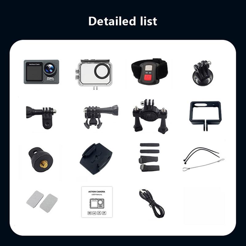 Câmara de ação F300AAR-G 5K com estojo à prova de água, controlo remoto e acessórios