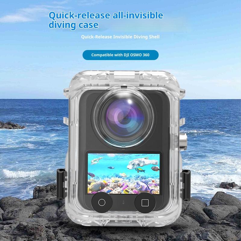 Caixa à prova de água para câmara de ação DJI Osmo 360 - Caixa subaquática magnética de libertação rápida para 60m com suporte de duas garras