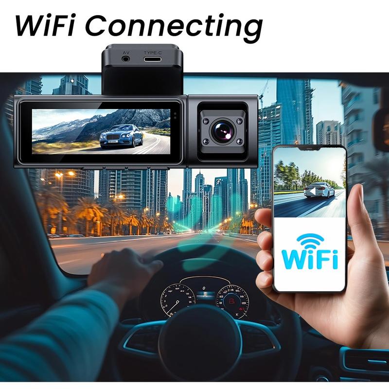Câmara de bordo F9 de 3 canais com GPS - Câmara frontal 4K, câmara interior e traseira 1080P, controlo por aplicação WiFi e visão noturna