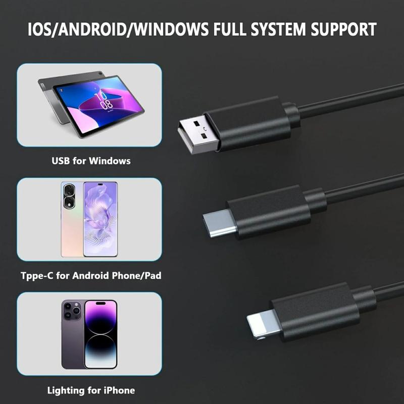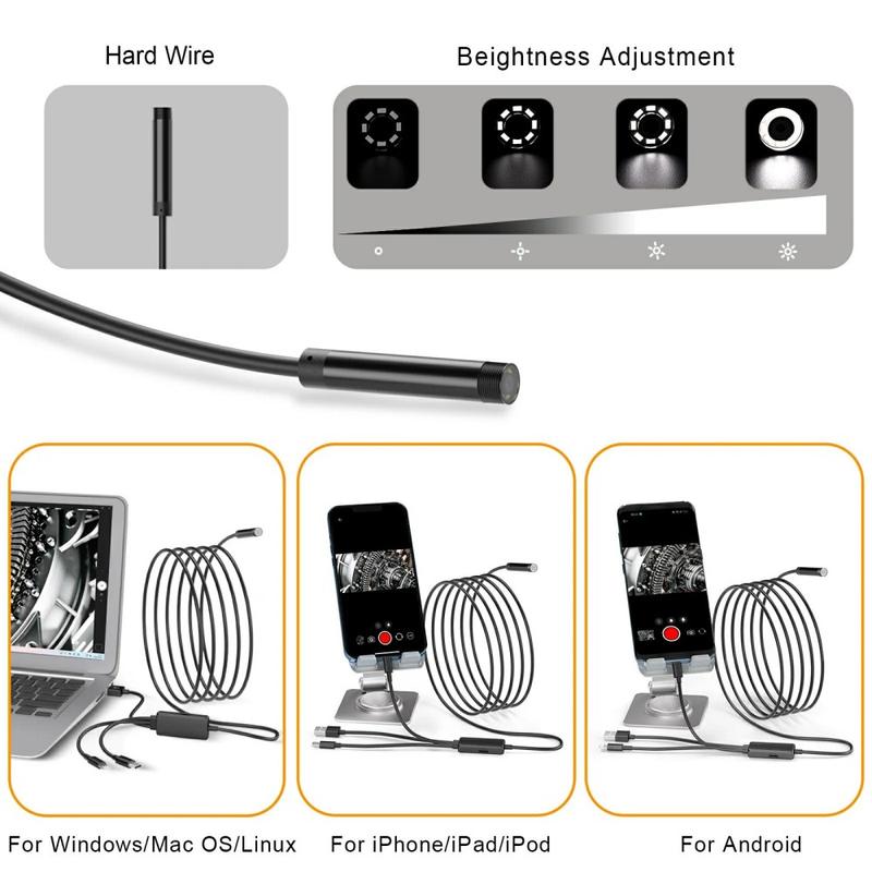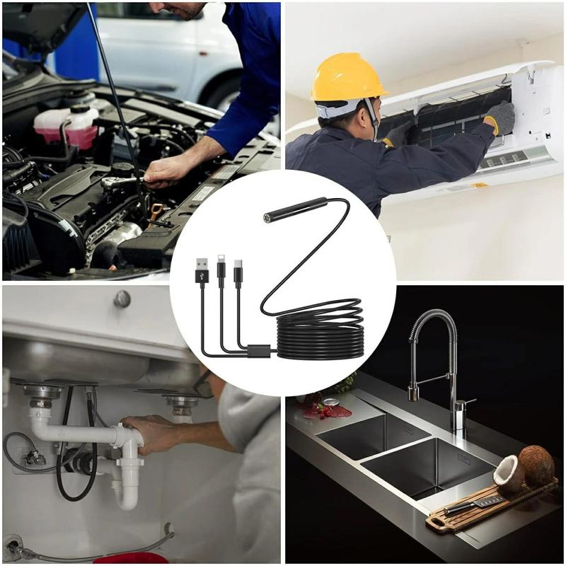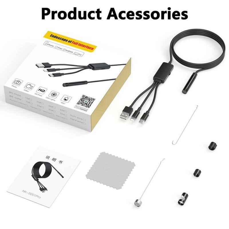 NK-5001Pro Câmara de inspeção / endoscópio 3 em 1 à prova de água IP67 para iPhone/Smartphone, iPad/Tablet - Lightning, USB-C, USB - 5m, 1080p/720p