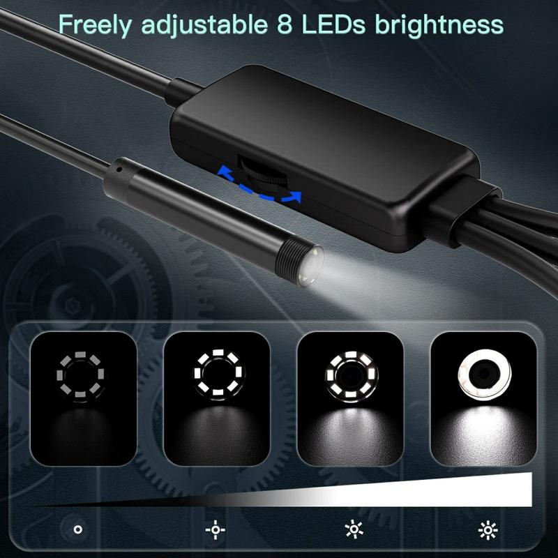 A câmara de inspeção/endoscópio NK-5001Pro 3 em 1 à prova de água IP67 é um boroscópio industrial versátil, concebido para se ligar diretamente ao seu dispositivo móvel. Com uma câmara de alta definição, este endoscópio fornece imagens e vídeos nítidos para fins de inspeção. A câmara está equipada com uma câmara HD com iluminação auxiliar LED de 8 mm de diâmetro, com um chip de alta sensibilidade que permite a utilização em ambientes de trabalho escuros. O tubo de alumínio tem um diâmetro de 5.5mm e a objetiva tem uma distância focal de 4-10 cm, proporcionando um ângulo de visualização amplo de 76 graus. O endoscópio é à prova de água com um grau de proteção IP67, tornando-o adequado para várias aplicações.