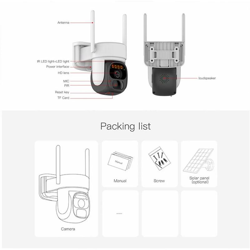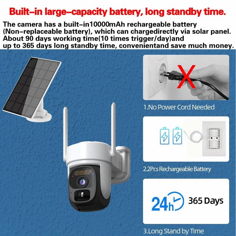 X3 Câmara de vigilância PTZ 2K WiFi alimentada por energia solar com conversação bidirecional, visão nocturna
