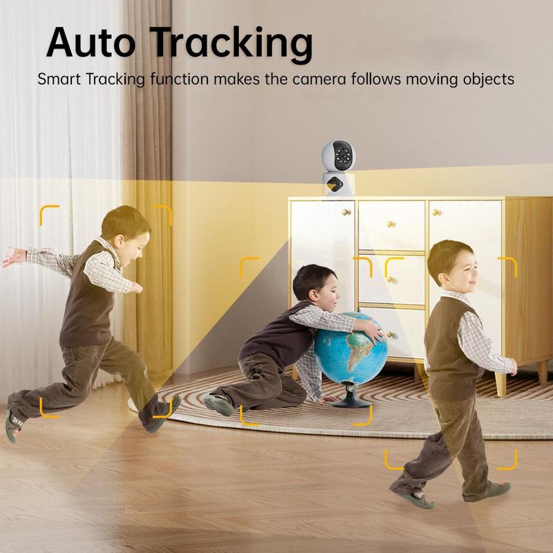 Câmara de segurança WiFi de lente dupla de 4 MP com seguimento de 360º, áudio bidirecional, visão nocturna