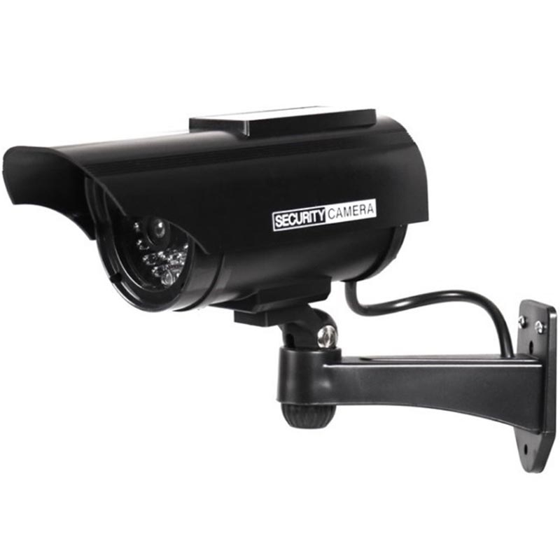 Câmara de segurança fictícia alimentada por energia solar com LED intermitente - Preto