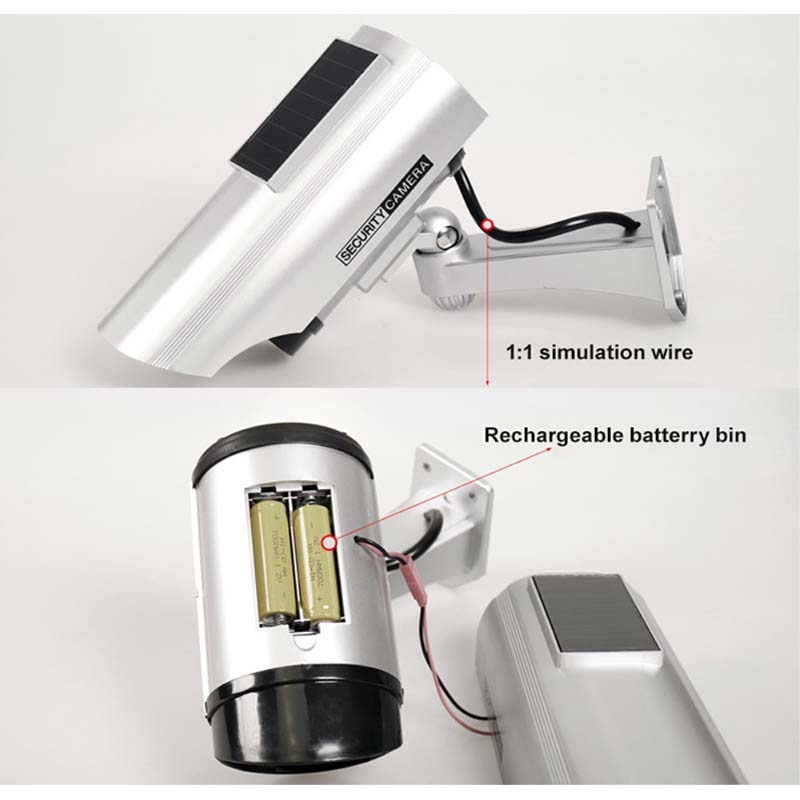 • Câmara de CCTV fictícia alimentada por energia solar com LED intermitente para segurança doméstica