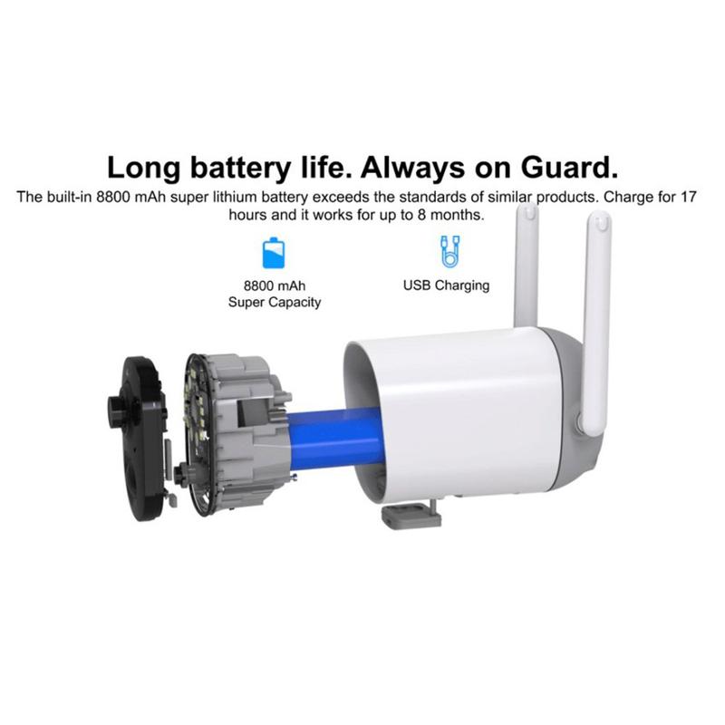 Um único suporte magnético, uma leitura QR no seu telemóvel e o CG7 está de serviço. Este guardião compacto transmite imagens nítidas em 1080 P, ouve e fala através de um altifalante incorporado e funciona durante meses com a sua própria bateria de 8 800 mAh.