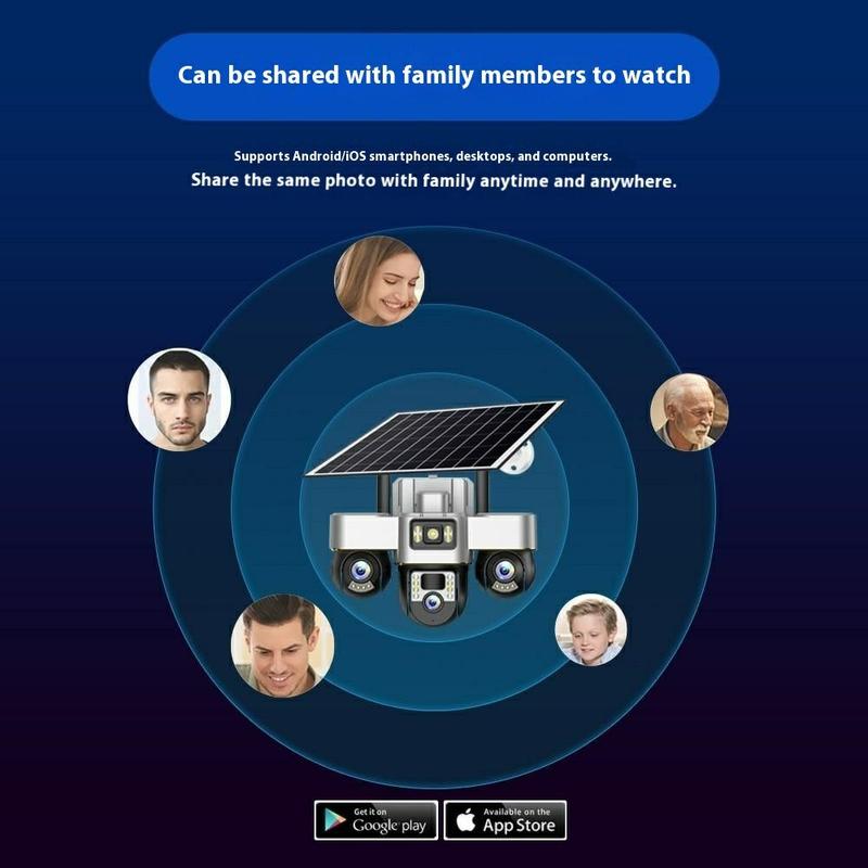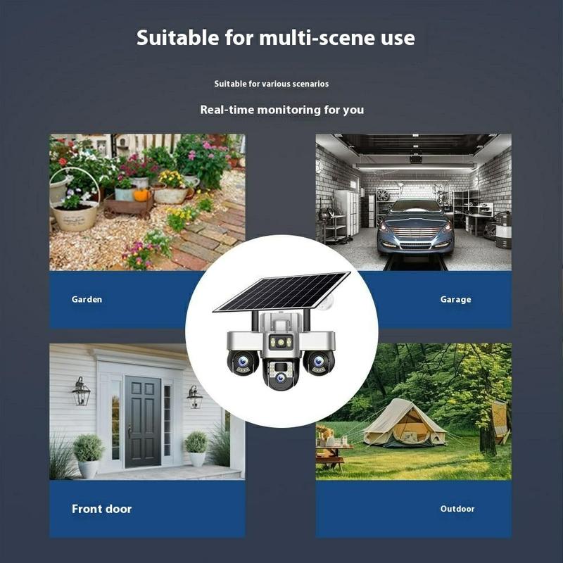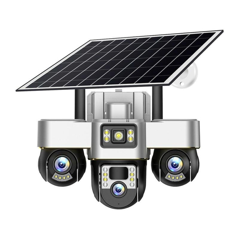 Câmara de segurança solar de lente tripla VTS30 V380pro - Sistema de vigilância Wi-Fi 360° / 4 G com painel de 8 W e bateria de 8 000 mAh