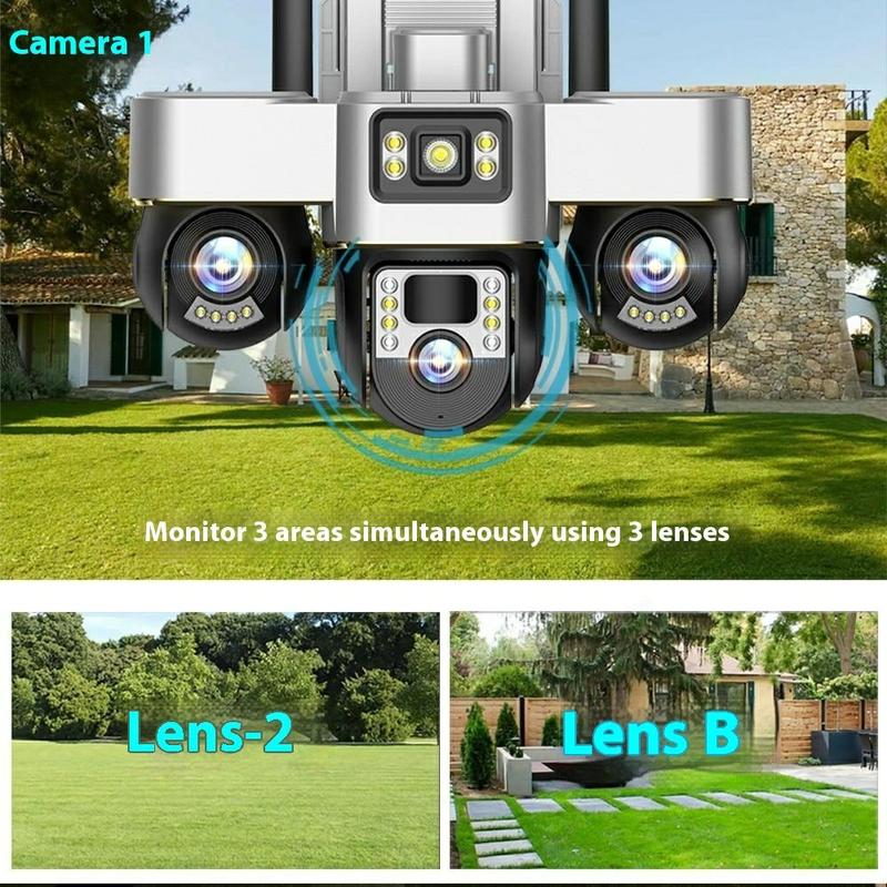 - Visualização abrangente: três lentes coordenadas eliminam os ângulos mortos que as câmaras individuais deixam para trás.