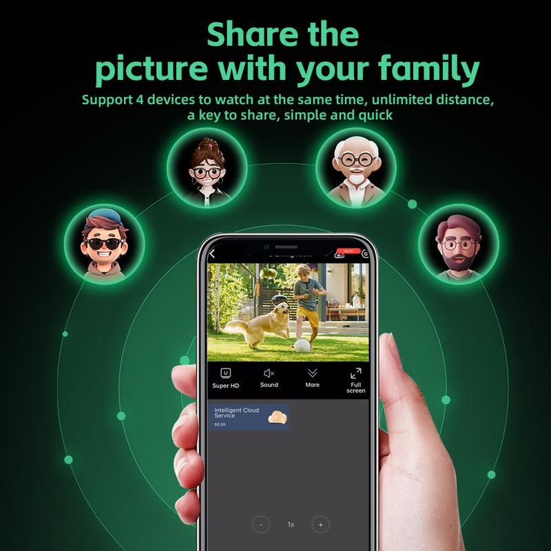 O microfone integrado suporta gravação de áudio e comunicação bidirecional, enquanto o suporte tanto para armazenamento em cartão TF como para armazenamento na nuvem lhe dá mais flexibilidade ao guardar imagens. A visão noturna a infravermelhos a preto e branco também ajuda a manter a visibilidade em condições de menor luminosidade, para que possa continuar a monitorizar mesmo quando as luzes estão apagadas.