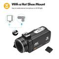 Câmara de vídeo digital 4K portátil - Ecrã tátil IPS de 3 polegadas, câmara de vídeo WiFi e zoom digital de 18X
