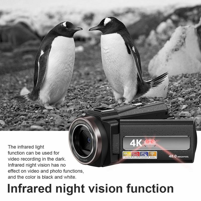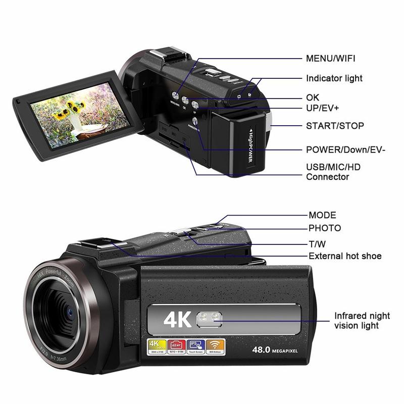 Câmara de vídeo digital HDV-254KM 4K - Câmara de vídeo Ultra HD de 48 MP com ecrã tátil de 3,0", zoom de 16X, visão nocturna IR e WiFi