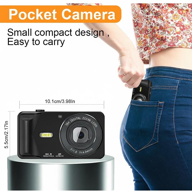 Câmara digital compacta A59 com ecrã IPS de 2.8" - 64MP, zoom de 18×, vídeo 2K (4K interpolado)