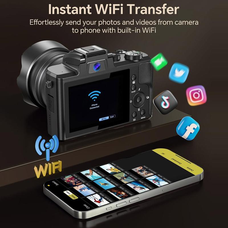 Perfeito para vloggers, viajantes e fotógrafos casuais que desejam gravação de vídeo 8K, configuração flexível de lente dupla e fácil compartilhamento sem fio - tudo em uma câmera compacta.
