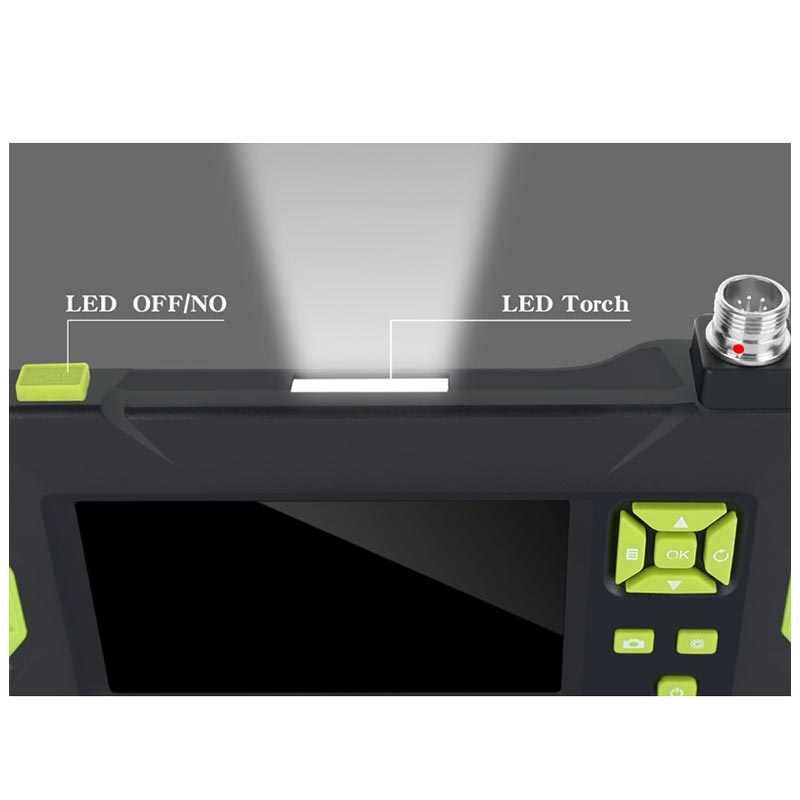 A câmara de boroscópio P30 manual possui um monitor LCD de 4,3" com botões de controlo e cabo semirrígido de 5 metros. O cabo semirrígido é dobrável e mantém o seu formato - ótimo para espaços de difícil acesso. A câmara endoscópica é à prova de água P30 tem oito LEDs e uma lanterna que aumentam o brilho. A certificação impermeável IP67 permite-lhe usá-la também num ambiente molhado ou subaquático.