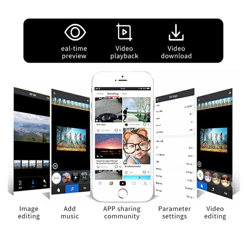 - WiFi: 2,4 GHz (802.11b/g/n) para pré-visualização e reprodução em tempo real no iOS/Android