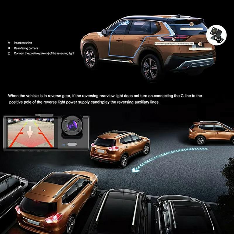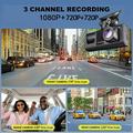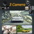 Câmara para automóvel com três lentes e WiFi 1080P - Câmara frontal/interior/traseira DVR com monitor de estacionamento, sensor G e visão noturna