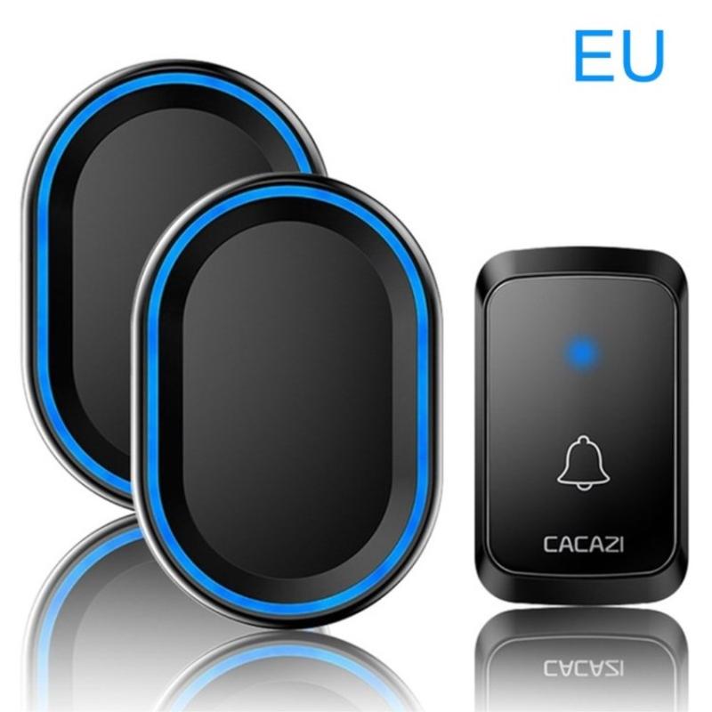 Campainha remota sem fio CACAZI, carrilhão de porta sem fio plug-in de parede à prova d'água com alcance de 300 m e 58 músicas