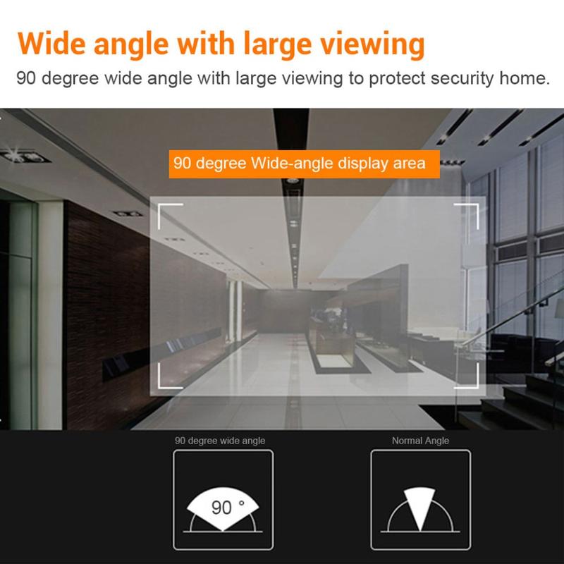 A lente de 90° proporciona um amplo campo de visão, permitindo-lhe ver os visitantes e os arredores mais claramente do que com um olho mágico tradicional.