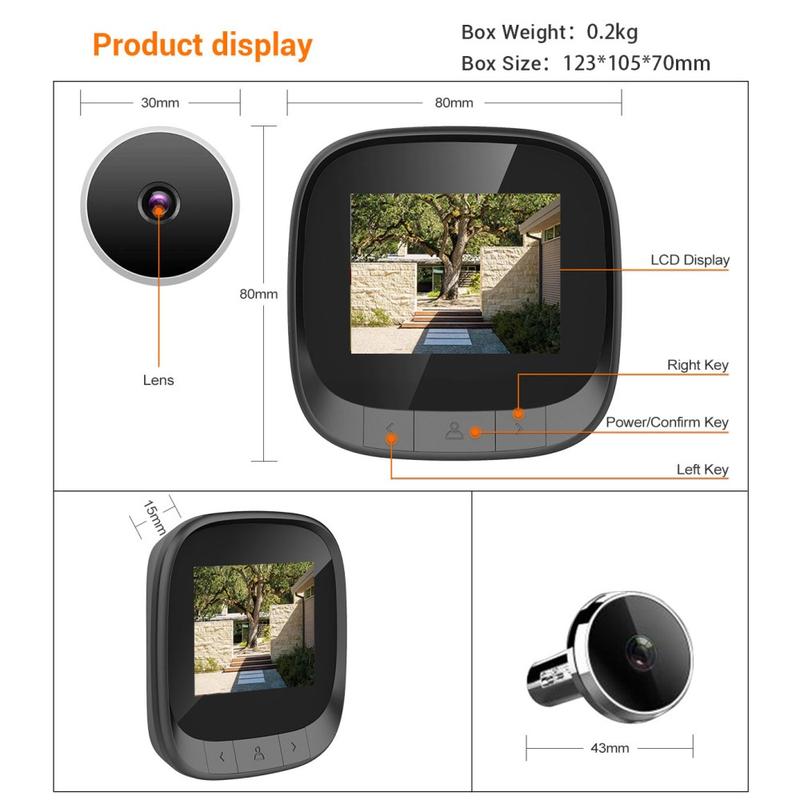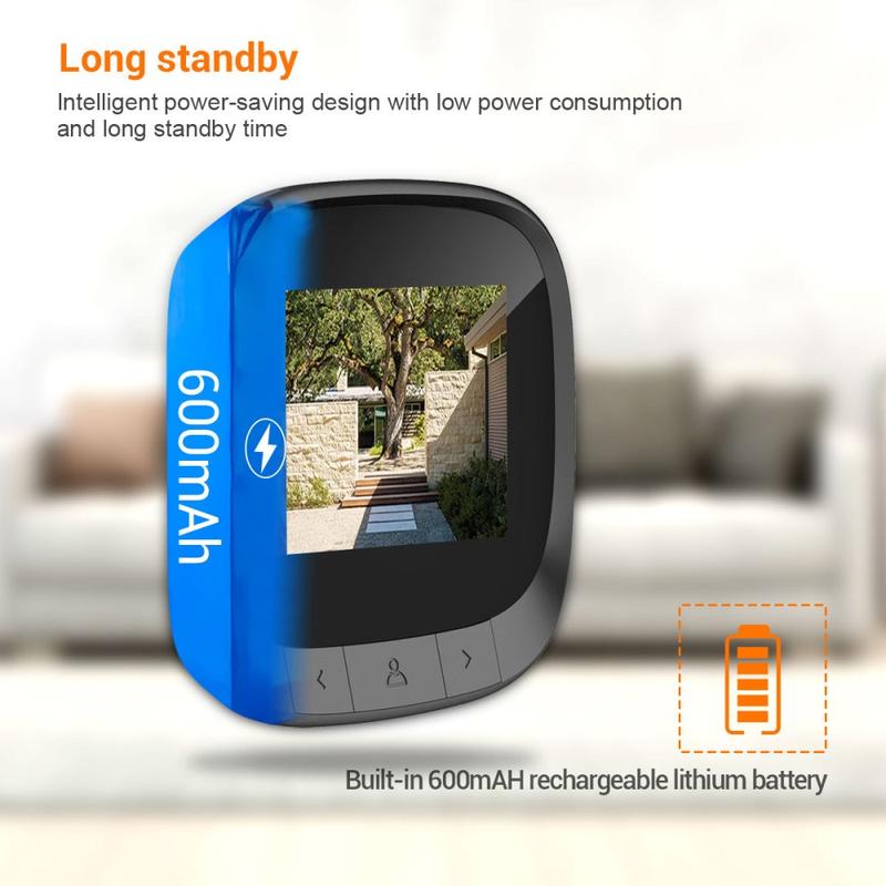 Alimentado por uma bateria de lítio de 600mAh incorporada, este visor de porta compacto suporta um funcionamento duradouro sem carregamentos frequentes.