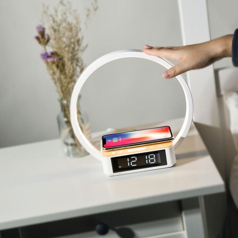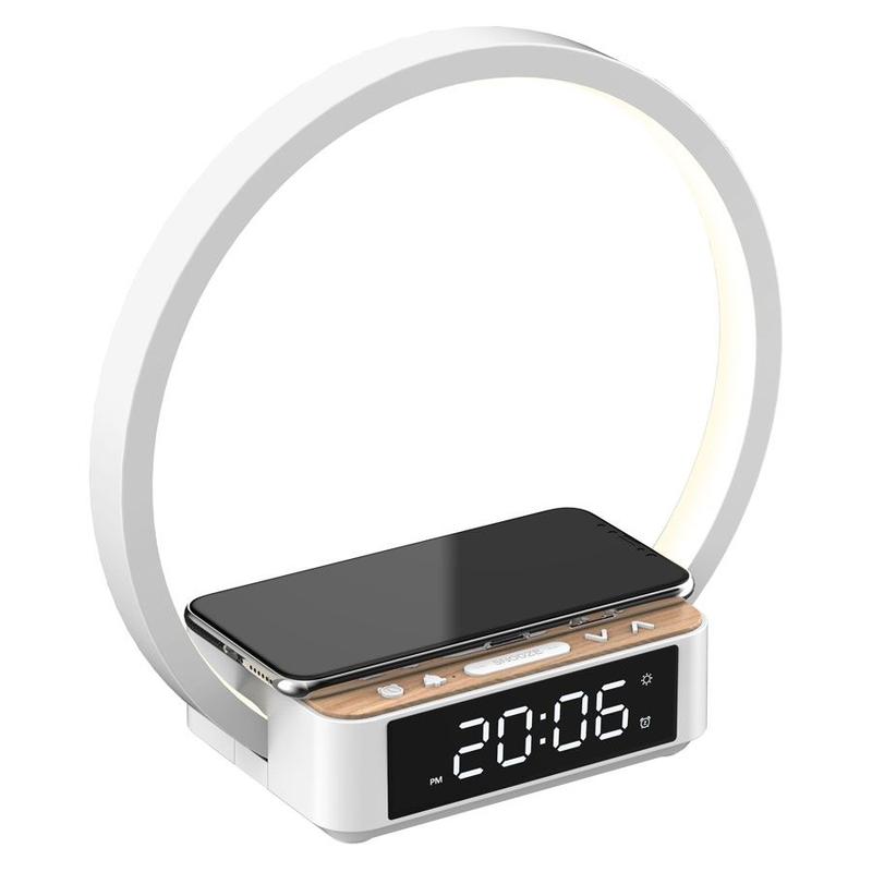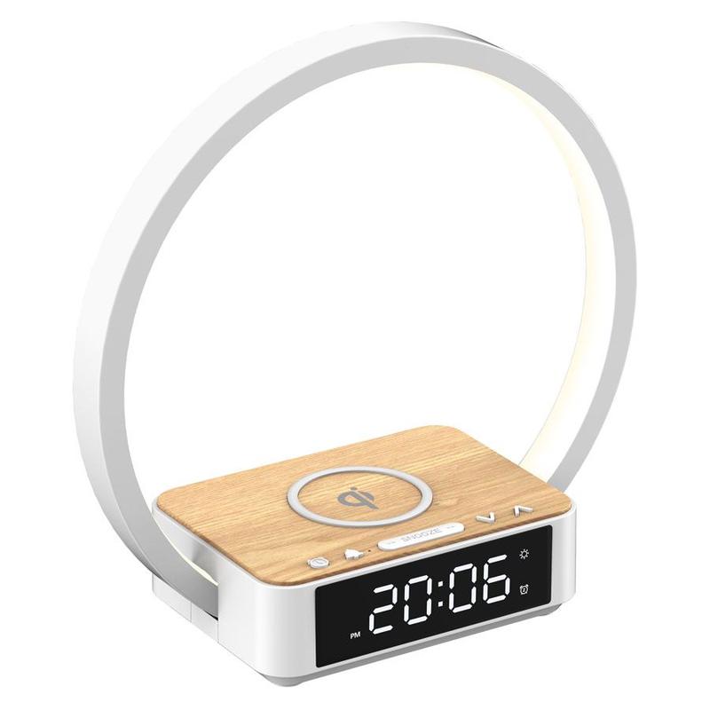 Candeeiro de cabeceira Lippa com carregamento sem fios e relógio despertador - 5W