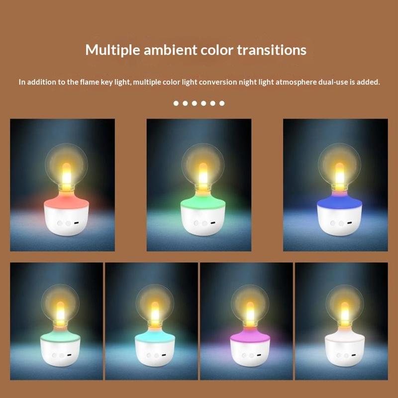O candeeiro com efeito de chama G80 combina um ambiente realista, portabilidade recarregável e modos de iluminação coloridos num design moderno, tornando-o uma luz noturna decorativa perfeita para quartos, secretárias e interiores acolhedores.