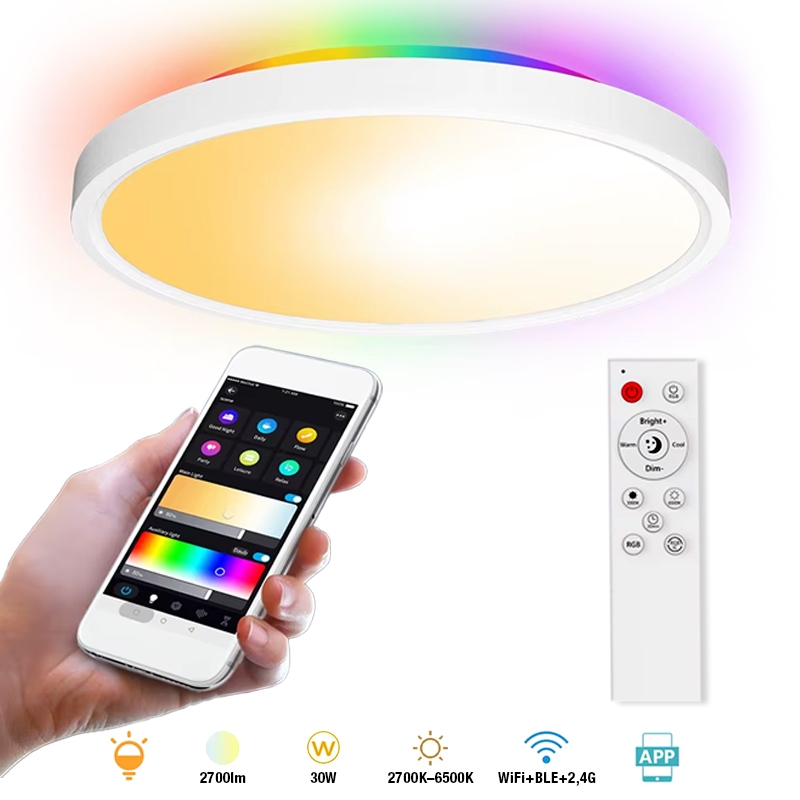 ZJ-WCLD-HC-RGB-CCT-S Candeeiro de teto RGBCW ultra-fino de 30 W com WiFi inteligente e controlo remoto Bluetooth