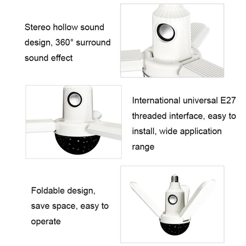 Candeeiro de teto LED dobrável de três folhas com altifalante Bluetooth e modos de atmosfera RGB