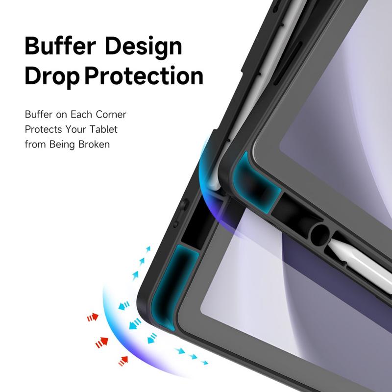 Ultra-fino: O exterior frontal fino, leve e suave ao toque é feito de couro PU de primeira qualidade, o interior sem riscos oferece uma excelente proteção e a estrutura em TPU + parte posterior em PC torna o seu tablet mais estável