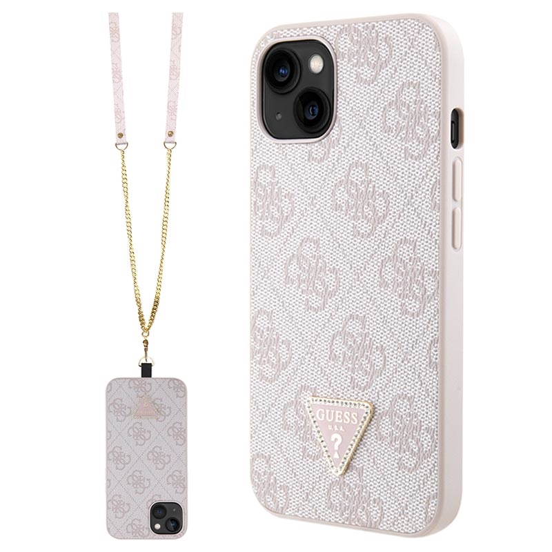 Capa com Alça Crossbody Guess 4G Strass Triangle Metal Logo para iPhone 15