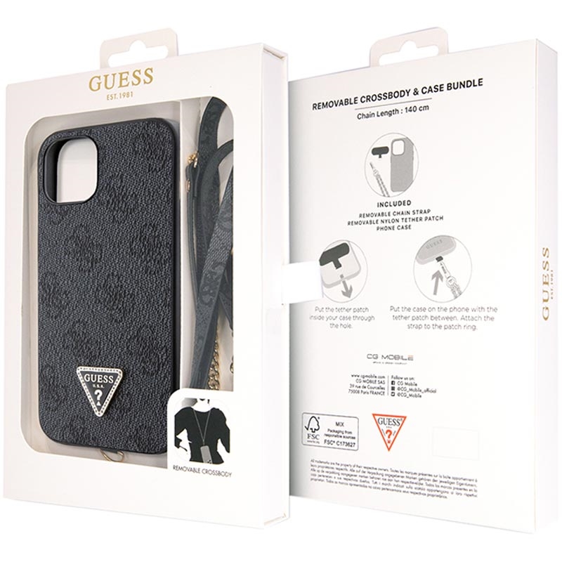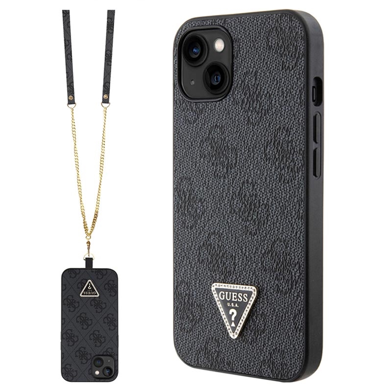 Capa com Alça Crossbody Guess 4G Strass Triangle Metal Logo para iPhone 15