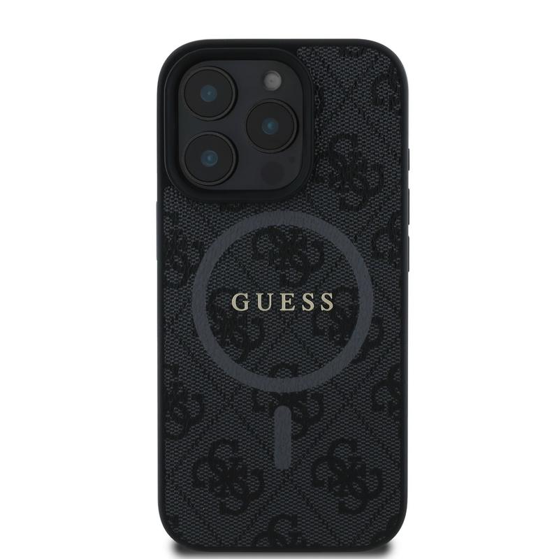Capa com anel colorido Guess 4G para iPhone 16 Pro - Compatível com MagSafe - Preto