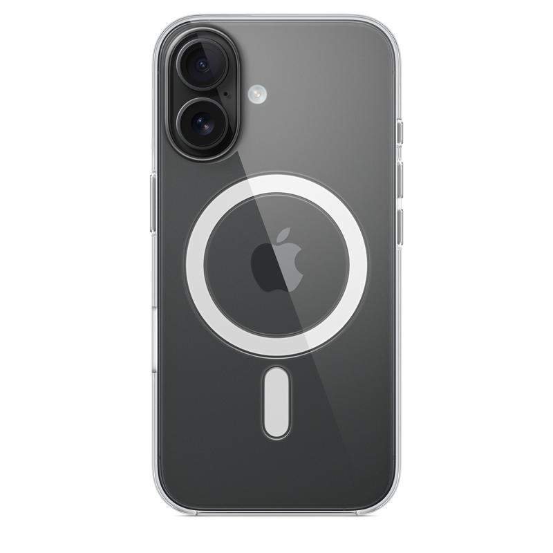 - Capa original Apple Clear, com MagSafe, concebida para o iPhone 16